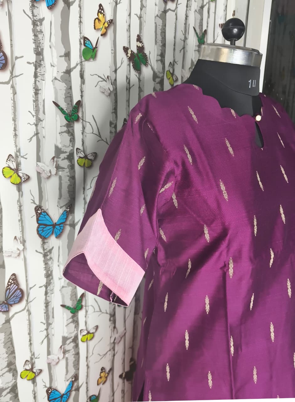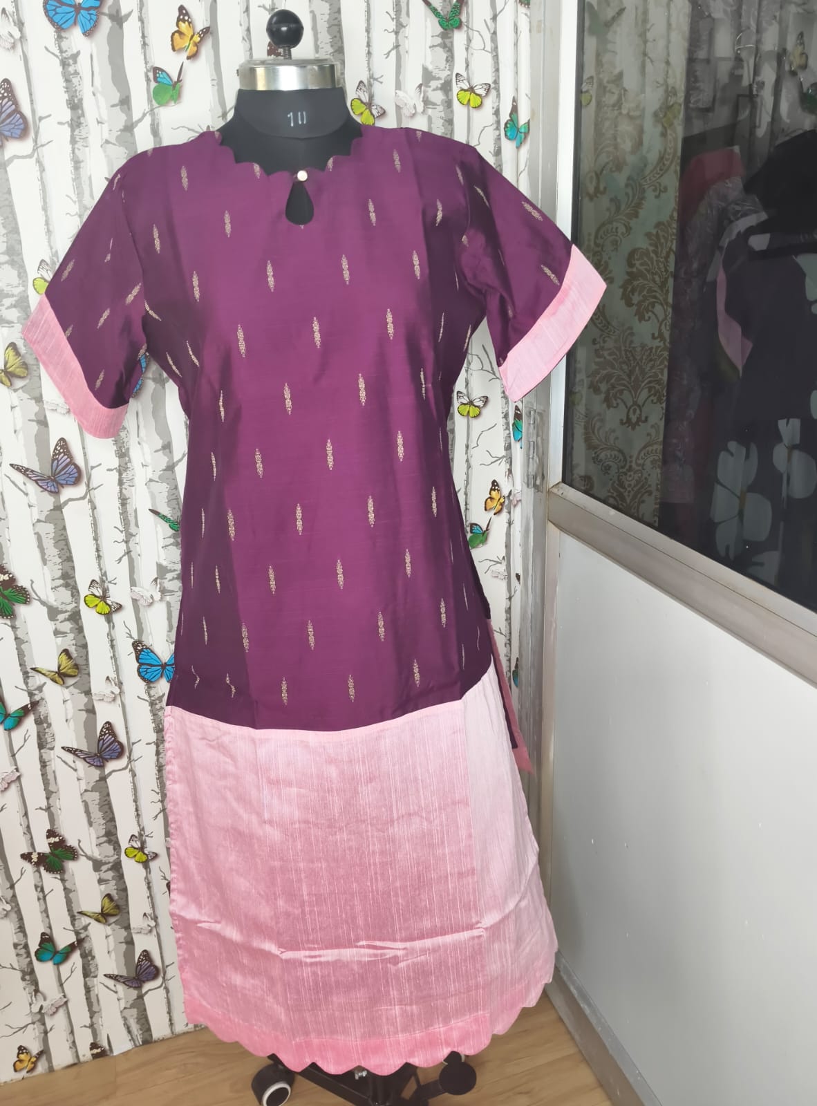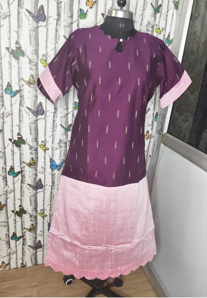 Wine & Baby Pink Raw Silk Kurti with lining attached.