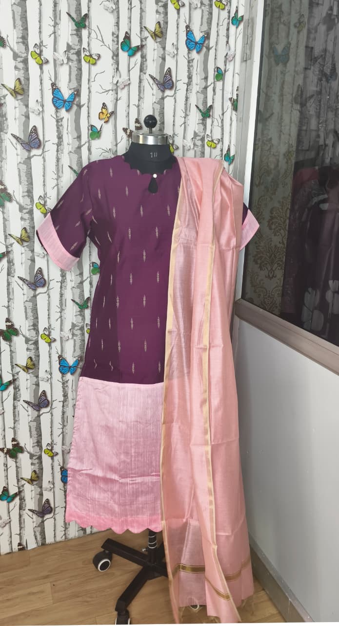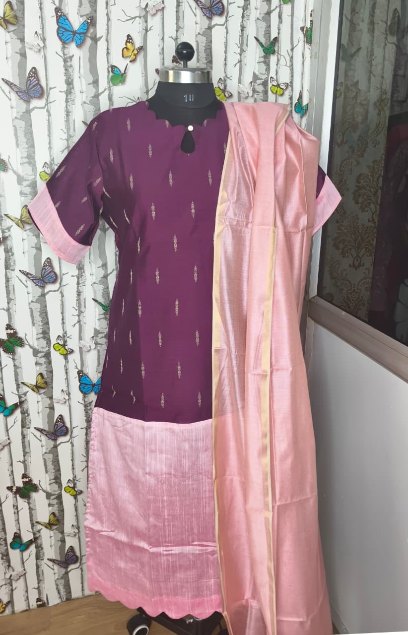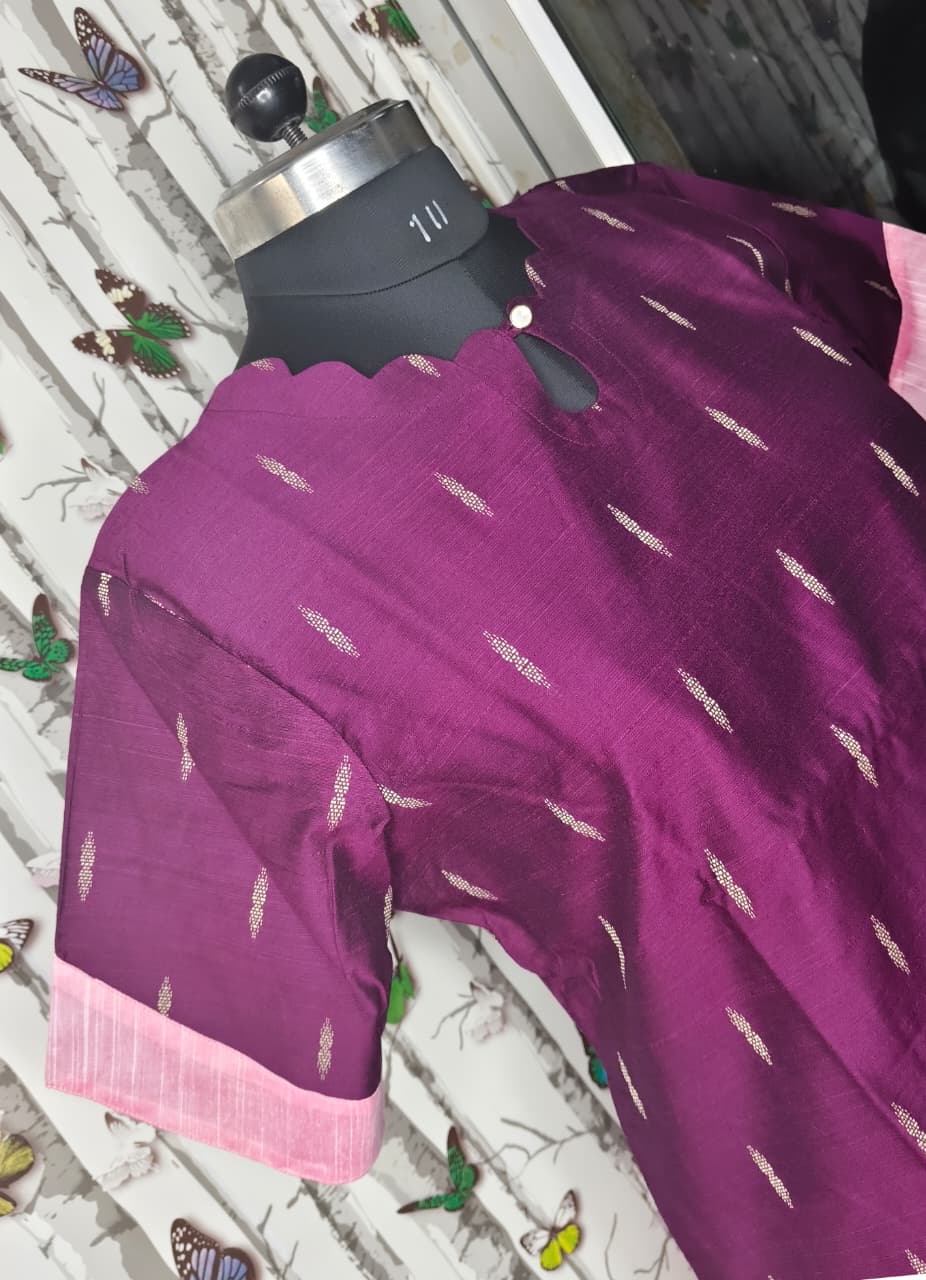 Wine & Baby Pink Raw Silk Kurti with lining attached.